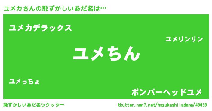 | ファンタジー風あだ名 | 『ユメディッシュ』『ゼユメトゥ』 |