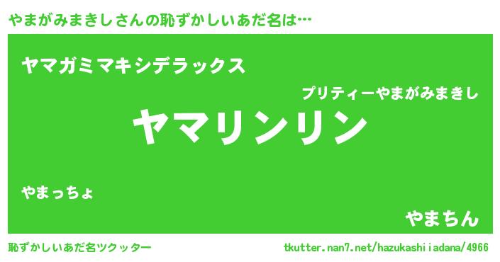 | 意味不明あだ名 | 『とにかく怪しいやまがみまきし』 |
