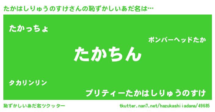 | ヘコむあだ名 | 『たかはしりゅうのすけ(苦笑)』『なまこ酢』 |