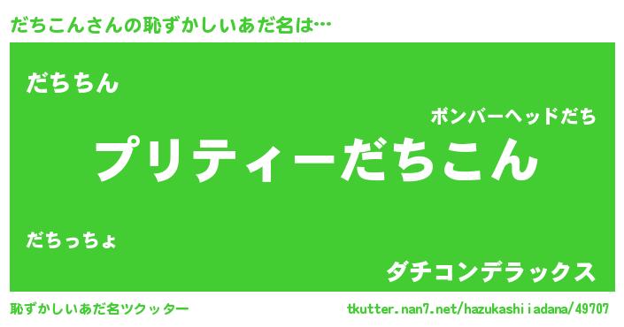 | ヘコむあだ名 | 『だちもー』『だちこん(笑)』 |