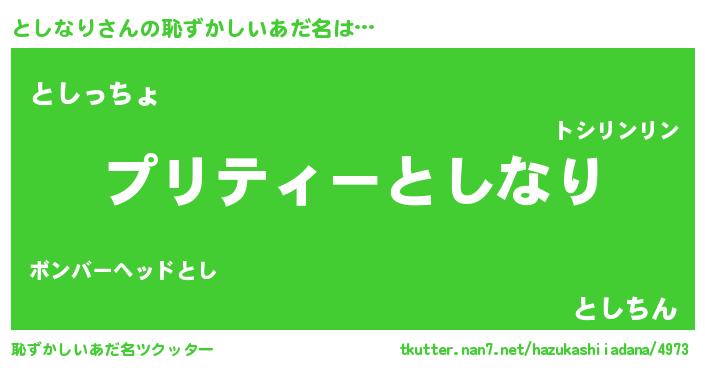 | ファンタジー風あだ名 | 『トシフェル』『エターナルトシナリー』 |