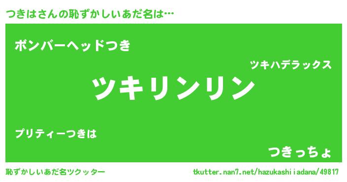 | ポケモン風あだ名 | 『ツキキング』『ヒツキハ』 |