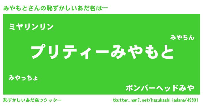 | ピコ太郎風あだ名 | 『ミコ十郎』『ミヤ五郎』『ミミ太郎』 |
