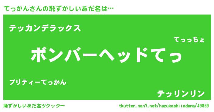 | 男性向けラノベタイトル風あだ名 | 『緋弾のテッカン』『テッカンスレイヤー』 |