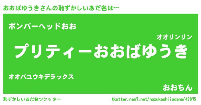 | 男性向けラノベタイトル風あだ名 | 『オオバユウキアートオンライン』 |
