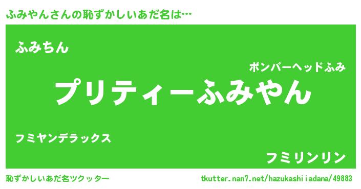 | ヘコむあだ名 | 『ふみっふぃ~』『ふみやん(笑)』 |