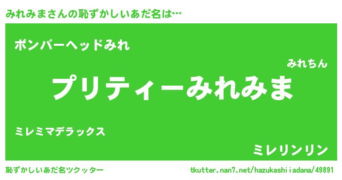 | ヘコむあだ名 | 『みれもー』『みれぷりん』 |