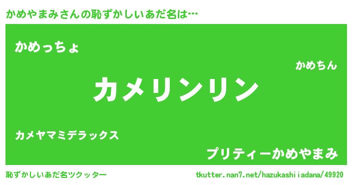 | 欧米人風あだ名 | 『ウサインかめやまみ』 |