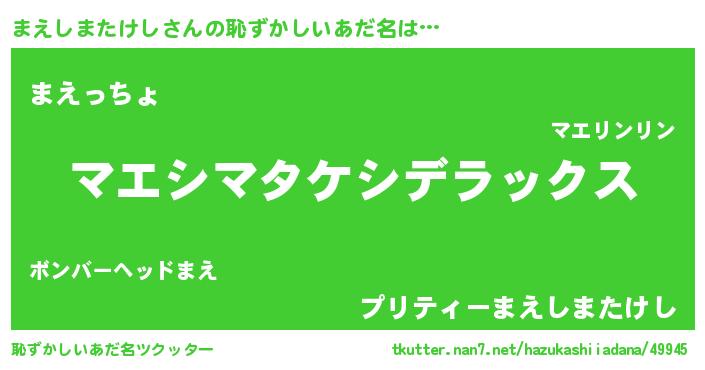 | ヒーロー風カッコイイあだ名 | 『最強戦士マエシマタケシ』 |