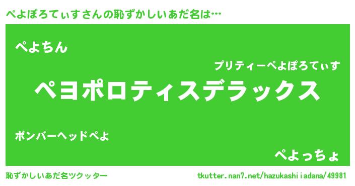 | 女子向けラノベタイトル風あだ名 | 『ぺよぽろてぃすなんてお断りですっ。』 |