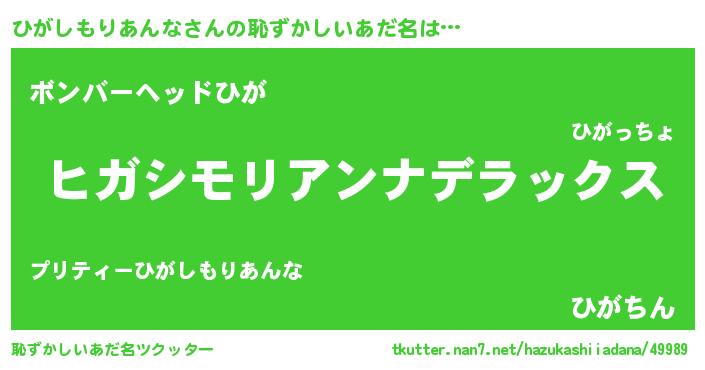 | 意味不明あだ名 | 『自称ひがしもりあんな』 |