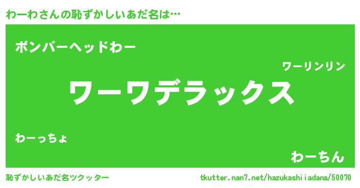 | ヒーロー風カッコイイあだ名 | 『超時空戦士ワーワ』『仮面ワーダー』 |