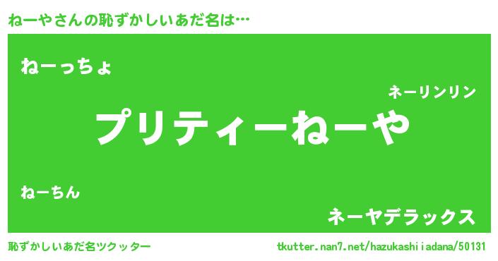 | ヒーロー風カッコイイあだ名 | 『スーパーネーヤ』『ウルトラねーやマン』 |