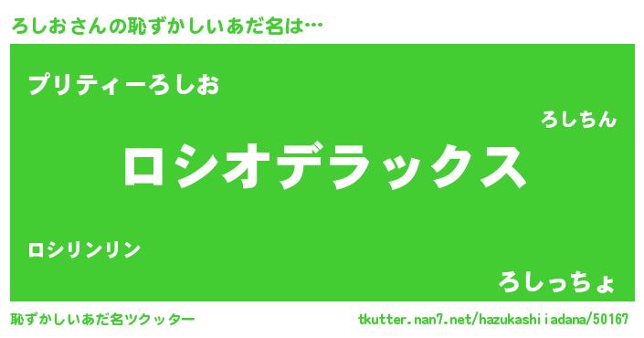 | 意味不明あだ名 | 『自称ろしお』『ペロリンろしお』 |