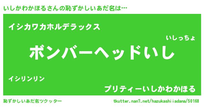 | ヘコむあだ名 | 『いしにー』『なまこ酢』『いしを』 |