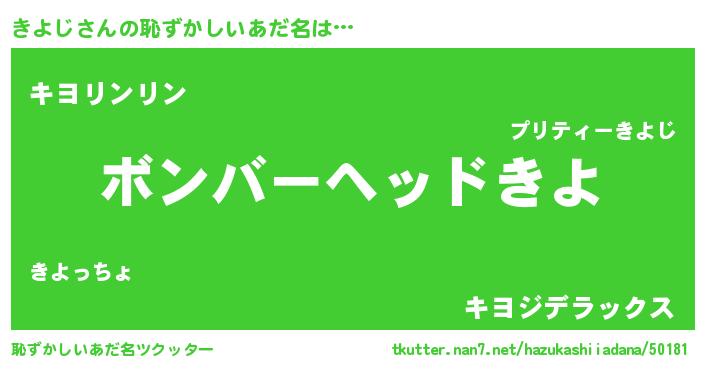 | ヒーロー風カッコイイあだ名 | 『天空の使者きよじ』『黄金騎士キヨ』 |