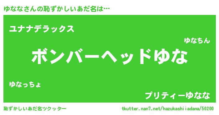 | ヘコむあだ名 | 『ゆなふぇ~』『ゆなな(爆)』 |