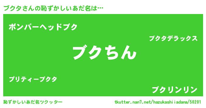 | ヘコむあだ名 | 『ブクタ(震え声)』『ブクっぺ』 |