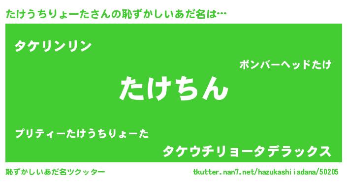 | ピコ太郎風あだ名 | 『ピコタ郎』『タケ史郎』『タタ太郎』 |