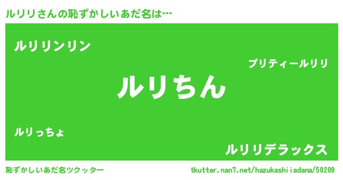 | ポケモン風あだ名 | 『ルリゴンZ』『ゼニルリ』『ヒルリリ』 |