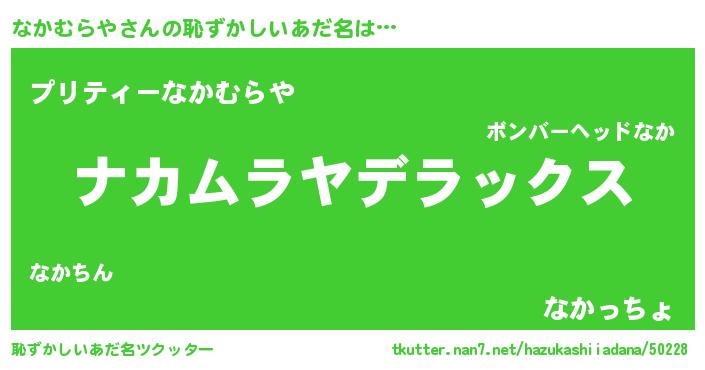 | ヒーロー風カッコイイあだ名 | 『最強戦士ナカムラヤ』『ネオナカムラヤ』 |