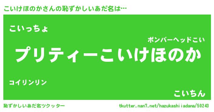 | 男性向けラノベタイトル風あだ名 | 『こいけほのかの憂鬱』 |