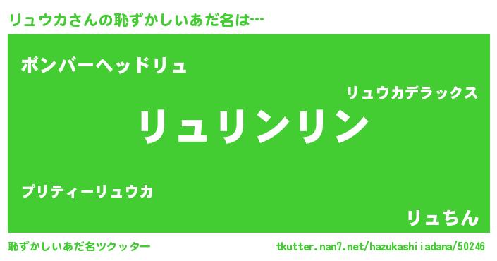 | 男性向けラノベタイトル風あだ名 | 『緋弾のリュウカ』『リュウカスレイヤー』 |