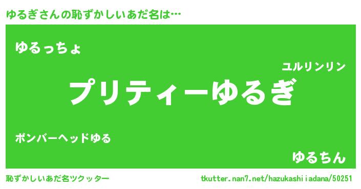 | 意味不明あだ名 | 『ペロリンゆるぎ』『ゆるぎフォーエバー』 |