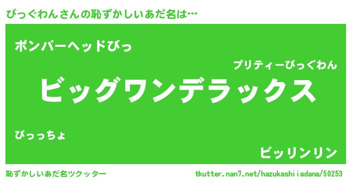 | 男性向けラノベタイトル風あだ名 | 『ビッグワンスレイヤー』 |