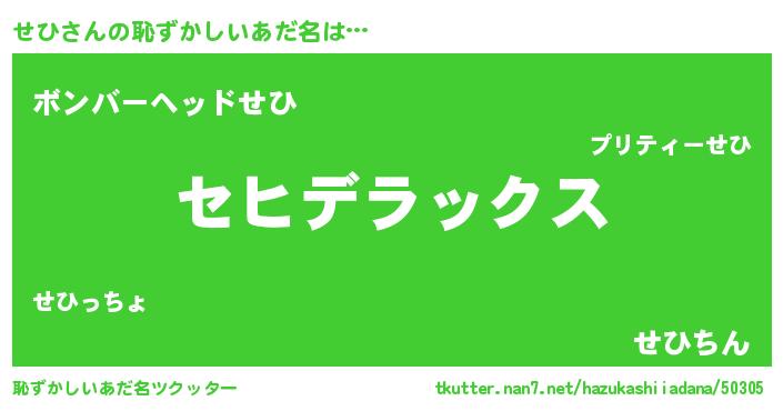 | ヘコむあだ名 | 『せひ(震え声)』『せひっふぃ~』 |