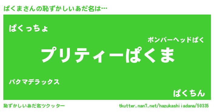 | 男性向けラノベタイトル風あだ名 | 『パクマスレイヤー』『ぱくまの憂鬱』 |