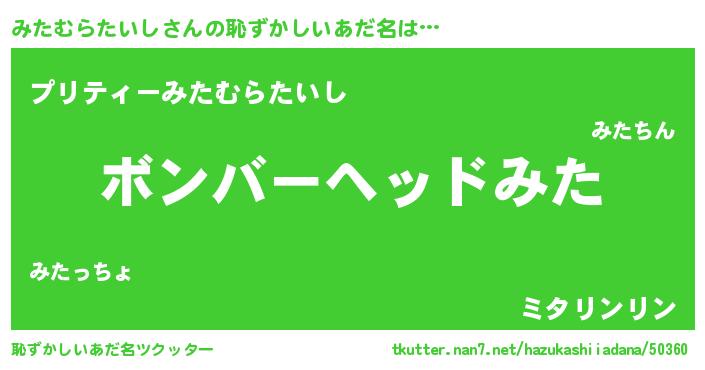 | 肩書あだ名 | 『みたむらたいしプロデューサー』 |