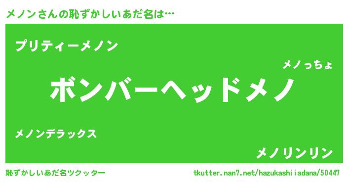 | ヒーロー風カッコイイあだ名 | 『正義の使者メノン』『スーパーメノン』 |