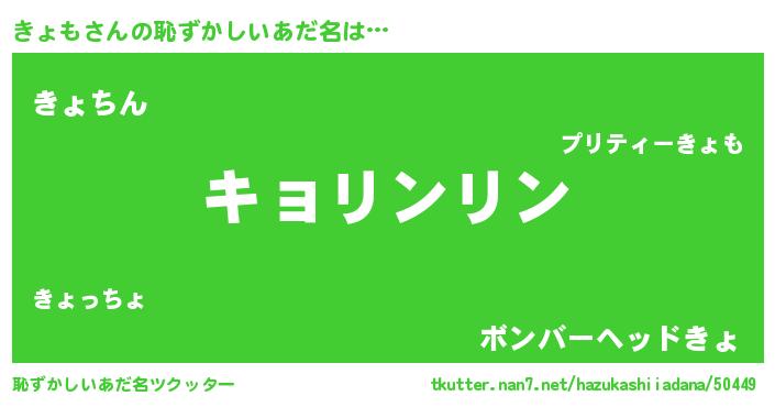 | 意味不明あだ名 | 『とにかく怪しいきょも』 |