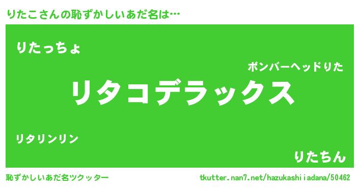 | ヒーロー風カッコイイあだ名 | 『サイバー戦士リタコ』『仮面リタダー』 |