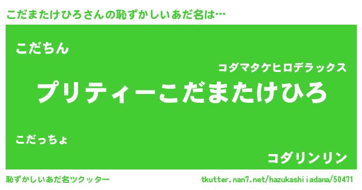 | ヘコむあだ名 | 『こだっふぃ~』『こだまたけひろ(苦笑)』 |