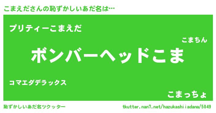 | 欧米人風あだ名 | 『こまえだ・ステッグマイヤー』 |