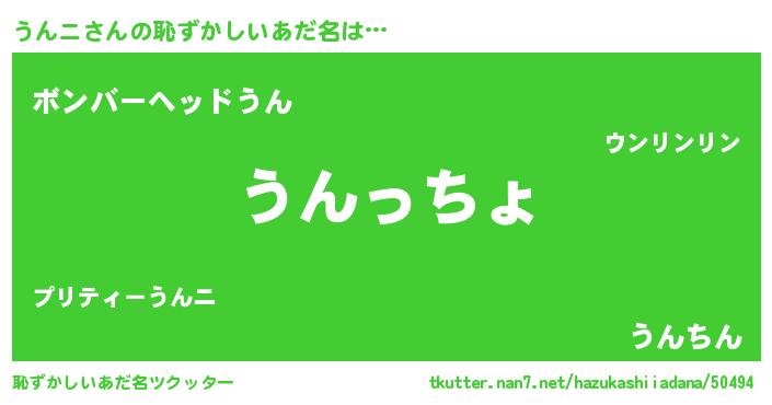 | 意味不明あだ名 | 『なめこ科うんニ属』『永久保存うんニ』 |