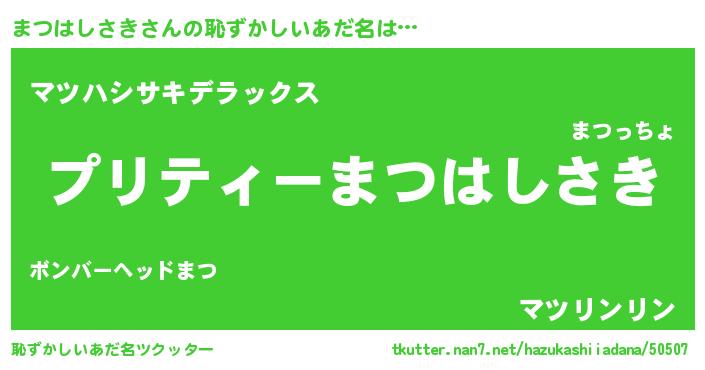 | 男性向けラノベタイトル風あだ名 | 『まつはしさきの憂鬱』 |