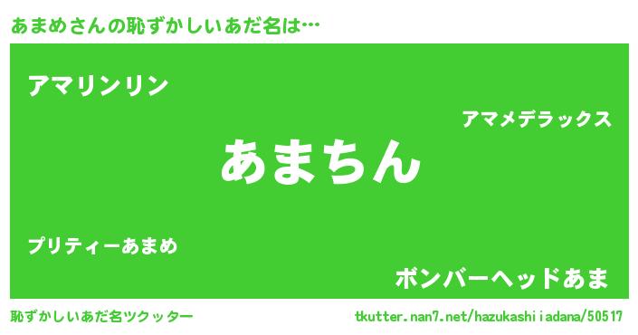 | 男性向けラノベタイトル風あだ名 | 『あまめ~年齢イコール彼女いない歴の魔法使い~』 |