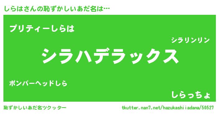 | ヒーロー風カッコイイあだ名 | 『ウルトラ戦士シラハ』『スーパーシラハ』 |