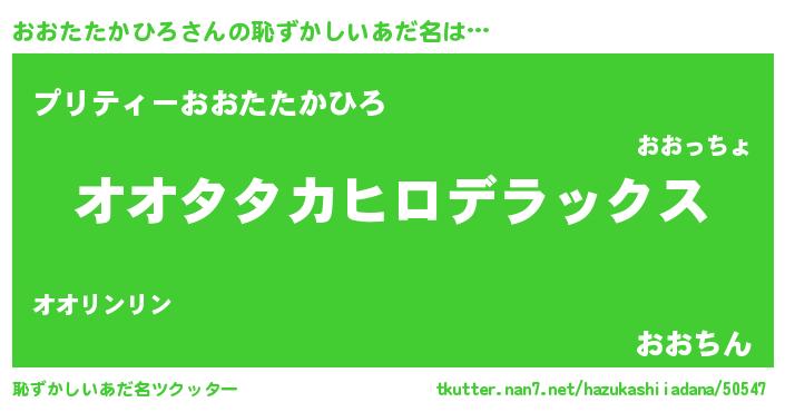 | ヒーロー風カッコイイあだ名 | 『仮面オオダー』『ネオオオタタカヒロ』 |