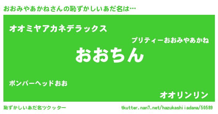 | ヒーロー風カッコイイあだ名 | 『仮面オオダー』『ネオオオミヤアカネ』 |
