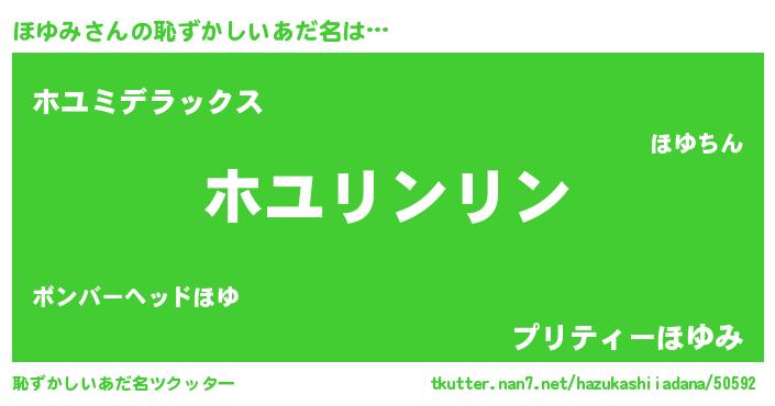 | 料理風あだ名 | 『ほゆみの豆乳スープ』『ほゆみごはん』 |