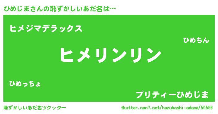 | 男性向けラノベタイトル風あだ名 | 『ひめじまに滅ぼされるだけの簡単なお仕事です』 |