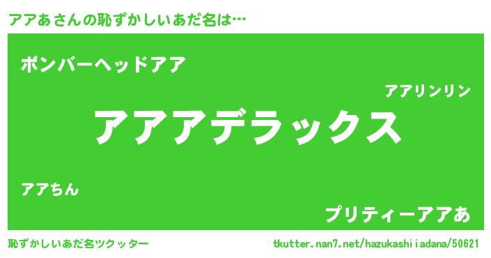 | 男性向けラノベタイトル風あだ名 | 『この素晴らしい世界にアアあを!』 |