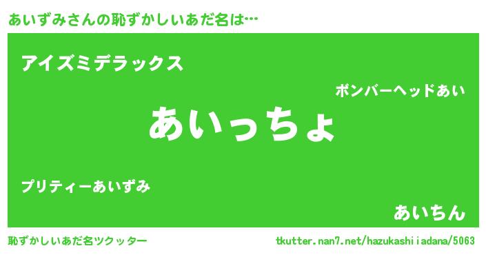 | ヘコむあだ名 | 『豆乳』『あいずみ(苦笑)』『あいお』 |