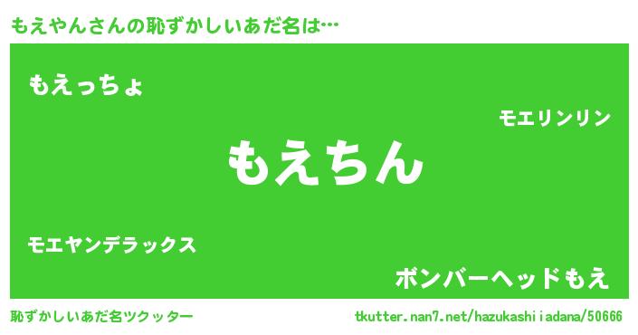 | ヒーロー風カッコイイあだ名 | 『ネオモエヤン』『ウルトラもえやんマン』 |
