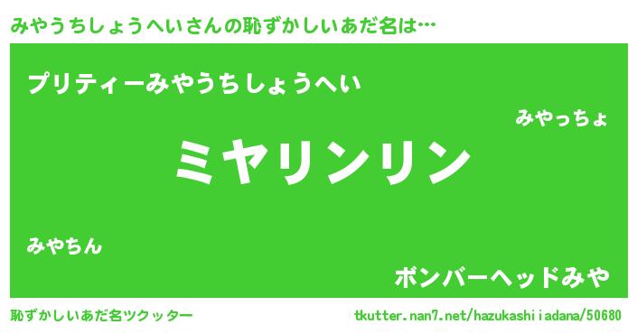 | ポケモン風あだ名 | 『ヒミヤウチショウヘイ』『ミヤチュウ』 |