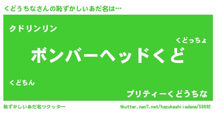 | ヒーロー風カッコイイあだ名 | 『天空の使者くどうちな』『炎刃騎士クド』 |